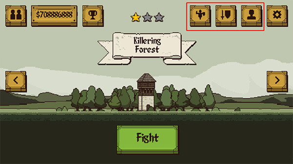 2、点击界面中间的“Fight”按钮即可开启对局,界面上方从左到右依次为训练场、武器库、角色定制三大功能入口;