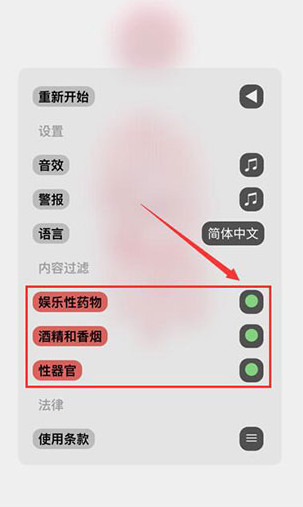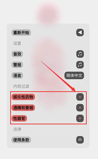 6、再次打开左下角的菜单图标,其中有一些游戏内容默认是关闭过滤状态,需要我们手动开启。