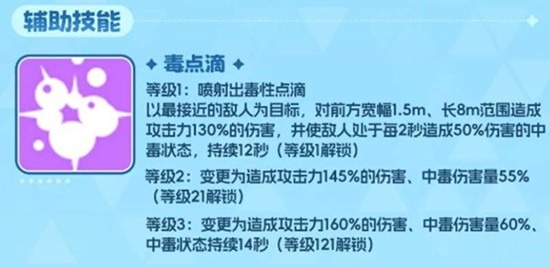 瑞贝卡喷射毒性点滴攻击附近目标,造成攻击力130%的伤害,并使敌人进入中毒状态。中毒状态每2秒造成50%的伤害,持续10秒,总共可触发6次伤害。她的另一个辅助技能是合成肾上腺素,能在10秒内为当前攻击力最高的队友提升20%的生命值与攻击力,同时该队友的暴击率也会提升10%。这个增益效果对于输出型角色来说提升非常显著。