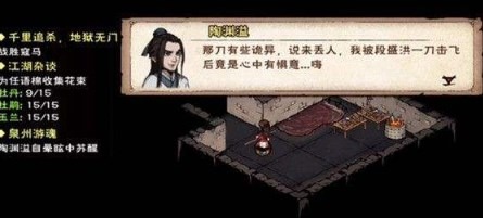 2、带上他刷怪直到触发疯狂状态,也可先带陶刷怪触发狂状态再去泉州,跟他打一架,记得切换成基础武功打,要让他四回合存活然后自爆,不能直接秒杀。