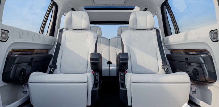 座舱体验是极氪 9X体现高端定位的重要环节,以“通透”打造旗舰级座舱体验。车内在用料选择、工艺细节以及空间布局上均强调质感与舒适性的统一。整车座舱面积达6.3平米,人均超过1平米,从第一排到第三排乘坐空间均为同级最大,座座皆从容。